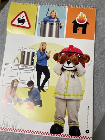 Dette har vært veldig spennende. Vi har gått rundt i barnehagen for å finne alle brannvarslene vi har i barnehagen. Barna fikk også med seg '"hjemmelekse", for å sjekke at alle hadde brannvarsel hjemme. Vi har hatt brannøvelse, dette var barna foreberedt på. Vi har malt brannbiler, kledd oss ut med brannkonstabel uniform, slukket "brann", og vi fikk besøk av brannbilen! Dette var kjempe stas. Alle som ville fikk klatre inn i bilen, vi fikk se alt utsryret som var inni bilen, og til slutt ble blålyset skrudd på!